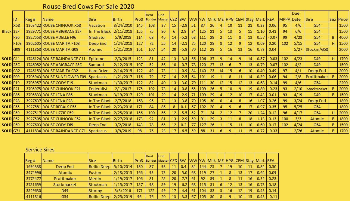 *UPDATE* We are close to having our new 2021 list of bred females for sale put together. We have our second pregnancy checking day scheduled for October 13th, and once we have those results we will get the official list posted as quick as we can. If you would really like to get a head start on studying the offering, contact Dan and he should be able to get you a copy of the rough draft of the sale list. Thanks for your patience!