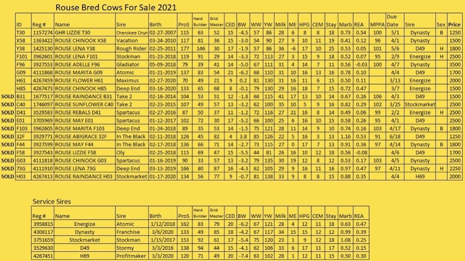We are offering another set of bred females for sale by private treaty again this year.This year’s offering is composed of 16 bred cows and 3 bred heifers.As usual, we had to find some females to sell in order to keep our herd size stable and make room for the new crop of bred heifers that we are keeping.The majority of these cows are ones that got bred later than we would like for our preferred breeding season, but due to a successful AI season, we were able to include a few earlier, AI bred cows as well.There are also a few cows that we had been using as recipients for our embryo transfer program who didn’t settle with an embryo pregnancy this year and find themselves on this list (B31 and F58).Those cows we feel can make productive commercial cows, but didn’t make our criteria to be seedstock quality.To learn more about the service sires they are bred to, check out our Herd Sires page, and feel free to reach out to Dan to learn more about any of the females offered.