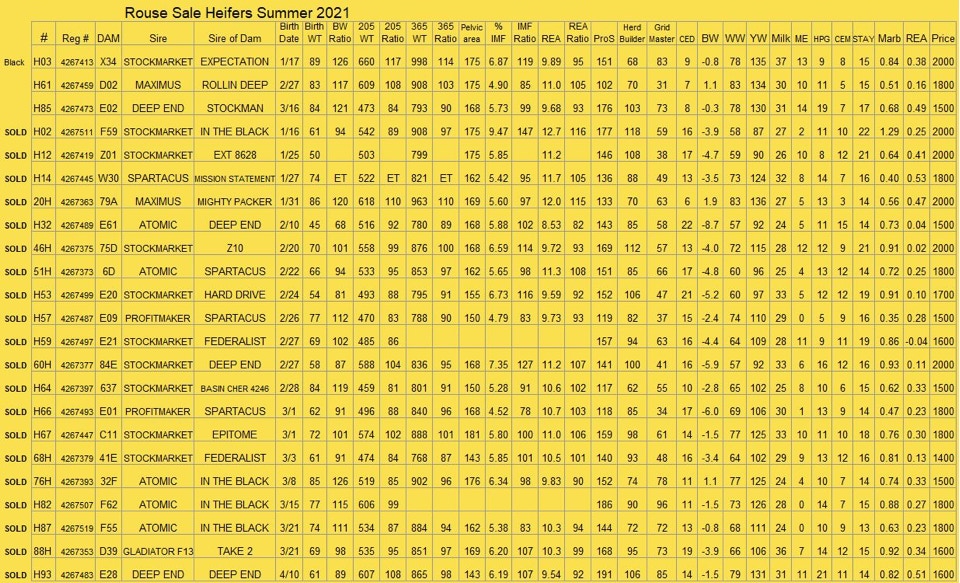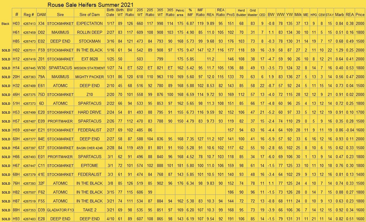We are once again offering the following group of heifers for sale by private treaty. We have more good heifers than we have room to keep here, and we feel these 23 heifers will make excellent cows. They have all been 50K tested, and those results are now reflected in their EPDs. We have added yearling data and pelvic area measurements, and carcass ultrasound measurements to the data. Feel free to call or email if you have any questions. We would be happy to show them to you!