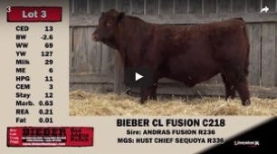 Leverage was the $130,000 high selling bull in the Ludvigson 2025 Big Sky bull sale. He is a son of the deceased but highly sought after Brown CRSB Confidence G1410, making him a half brother of the $400,000 PIE Hollywood 222. His dam is one of the top donor cows in the Boot Jack herd. He has a terrific set of EPDs, particularly excelling at calving ease and carcass. We think Leverage will be a great compliment to the main Bieber sire lines we have been using.