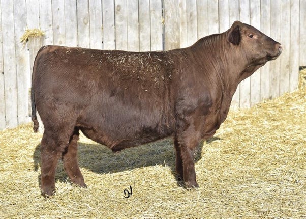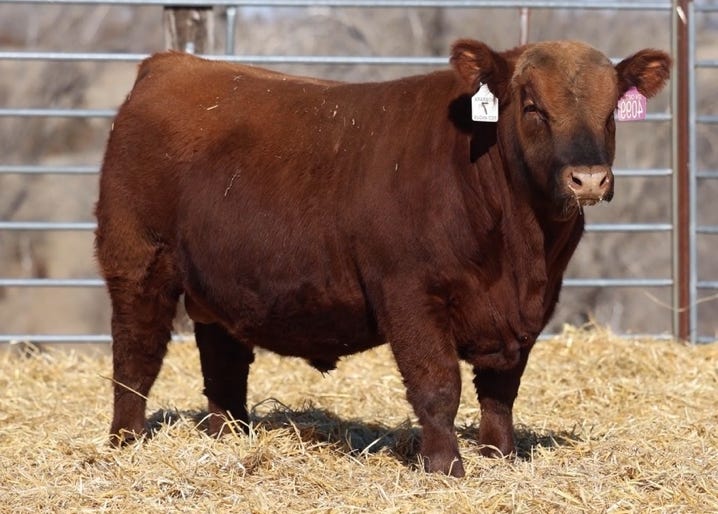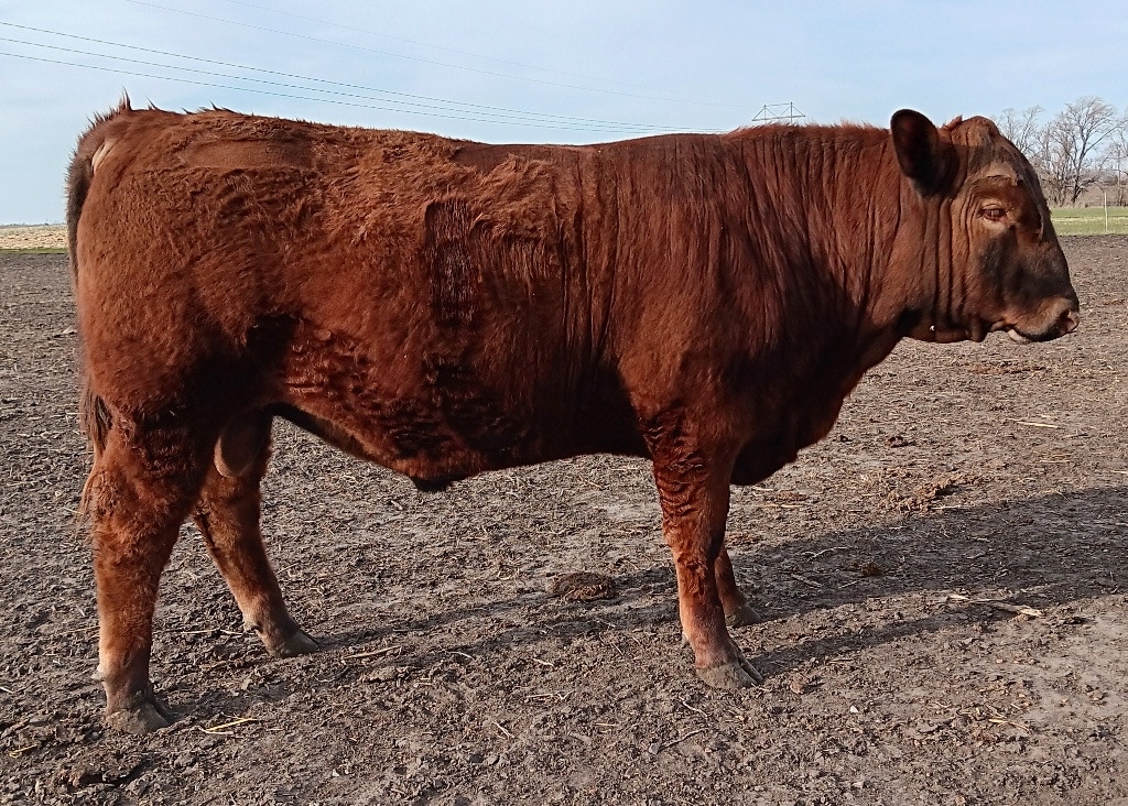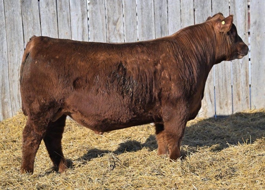 Improver was the $155,000 high selling bull at the 2025 Niobrara Red Angus bull sale. His sire, STRA Ranch Hand 2010 is one of the hottest sires in the breed with semen off the market. His dam is sired by John Wick, one of the most popular phenotype bulls in the breed and a complete outcross to our herd. Improver has terrific across the board EPDs, with an emphasis on maternal traits, as seen in his top 1% Herdbuilder Index and Stayability. With his performance, carcass scan, and impressive phenotype, we are really excited to see his calves hit the ground in 2026!