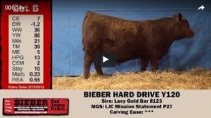 Hard Drive proved himself to be one of the best bulls in the Red Angus breed in the 2010’s. He is an outcross to most of our herd, while providing breed leading growth, marbling and REA. He has tremendous depth and spring of rib, with above average bone, great feet and an excellent disposition. His sons were really in high demand in the Bieber production sales when he was in use. His dam really did a great job as a donor for Biebers, producing Hard Drive, Deep End and Gladiator, and sold in Denver to Twedt Red Angus for $30,000. We have daughters in production now, and they are doing a great job. Hard Drive semen is very rare, and we are only getting Hard Drive calves through our ET program currently.